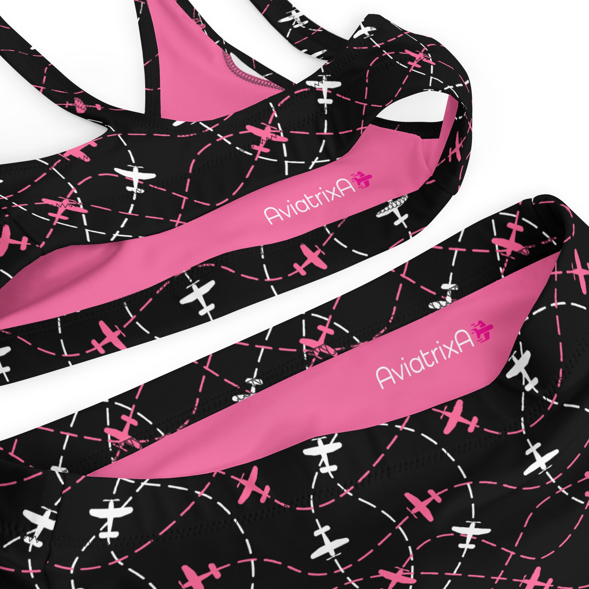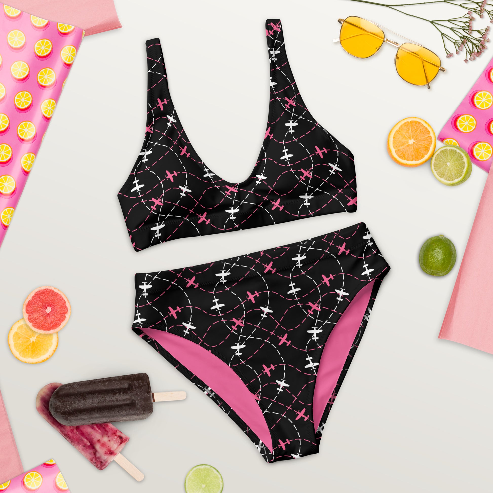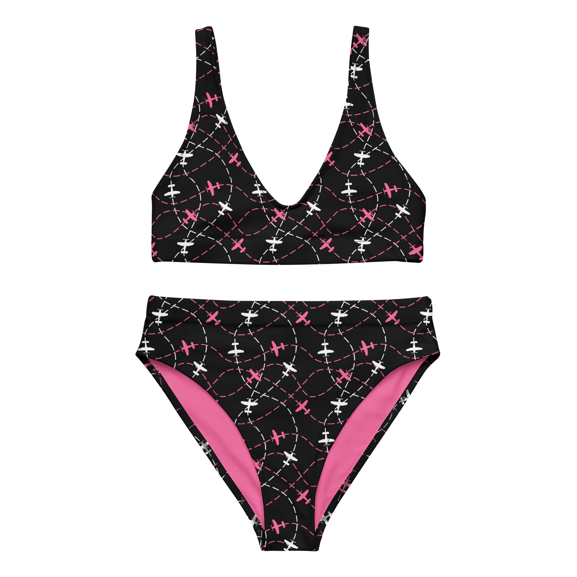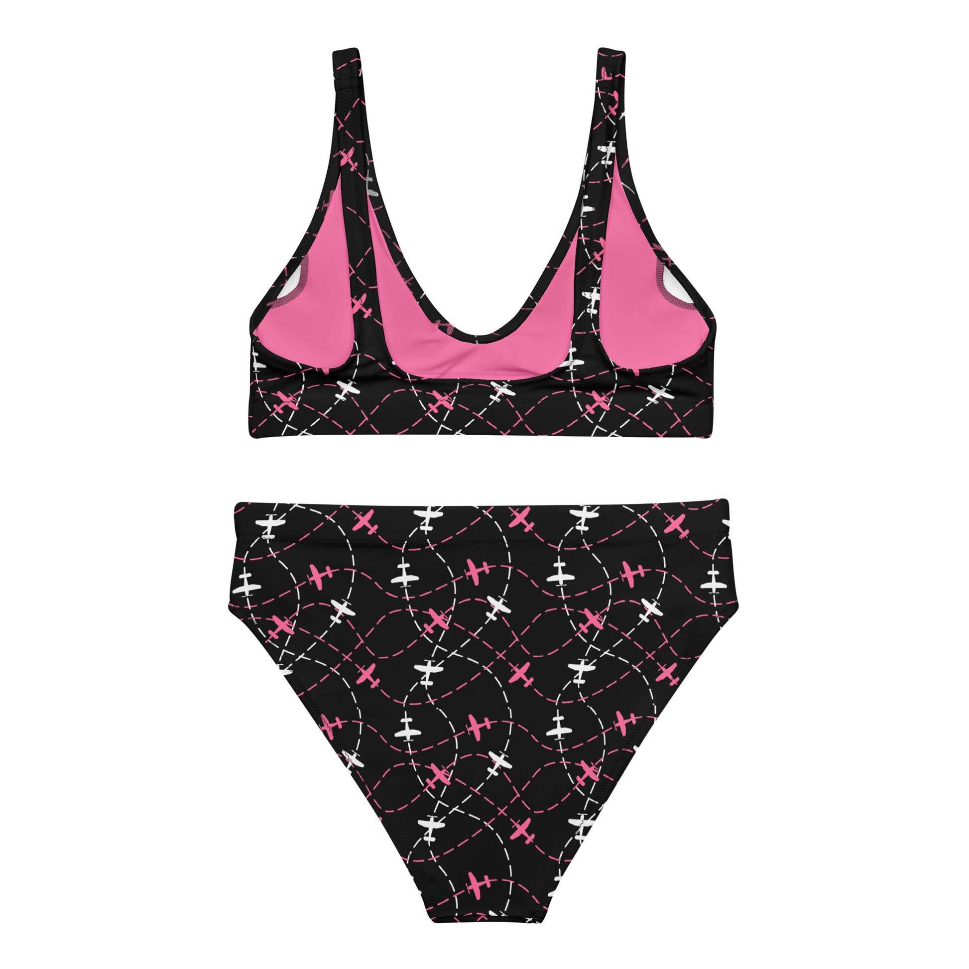 Airplane Print Black High-Waisted Bikini