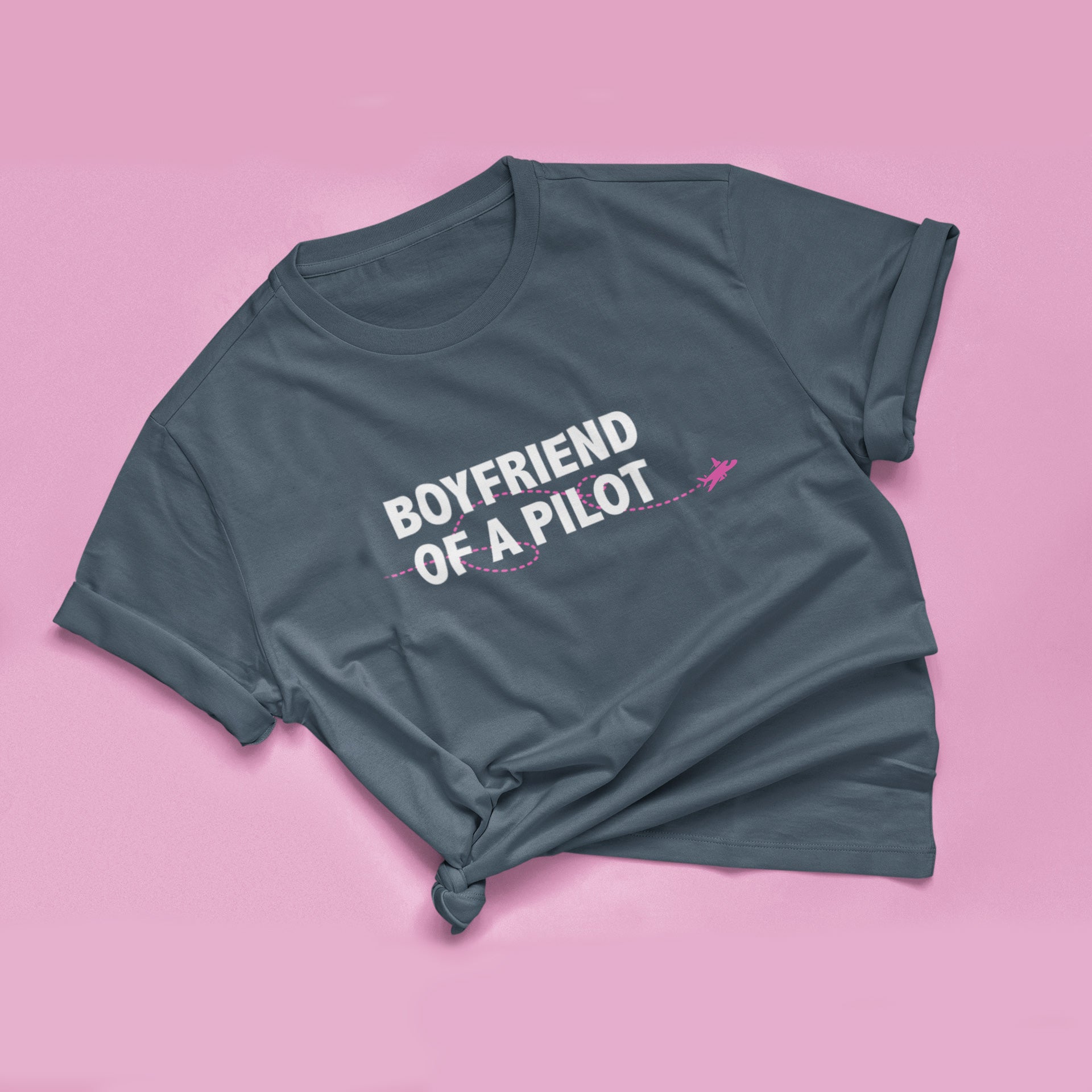Choose a small plane, a jet plane or a helicopter in either a pink or yellow accent under white text. Featuring a cozy and comfortable poly-cotton blend in a blue-gray Indigo color with a unisex fit, this tee might be worn more than just one flight. Every flight.... or every day you share how proud you are to know a pilot!