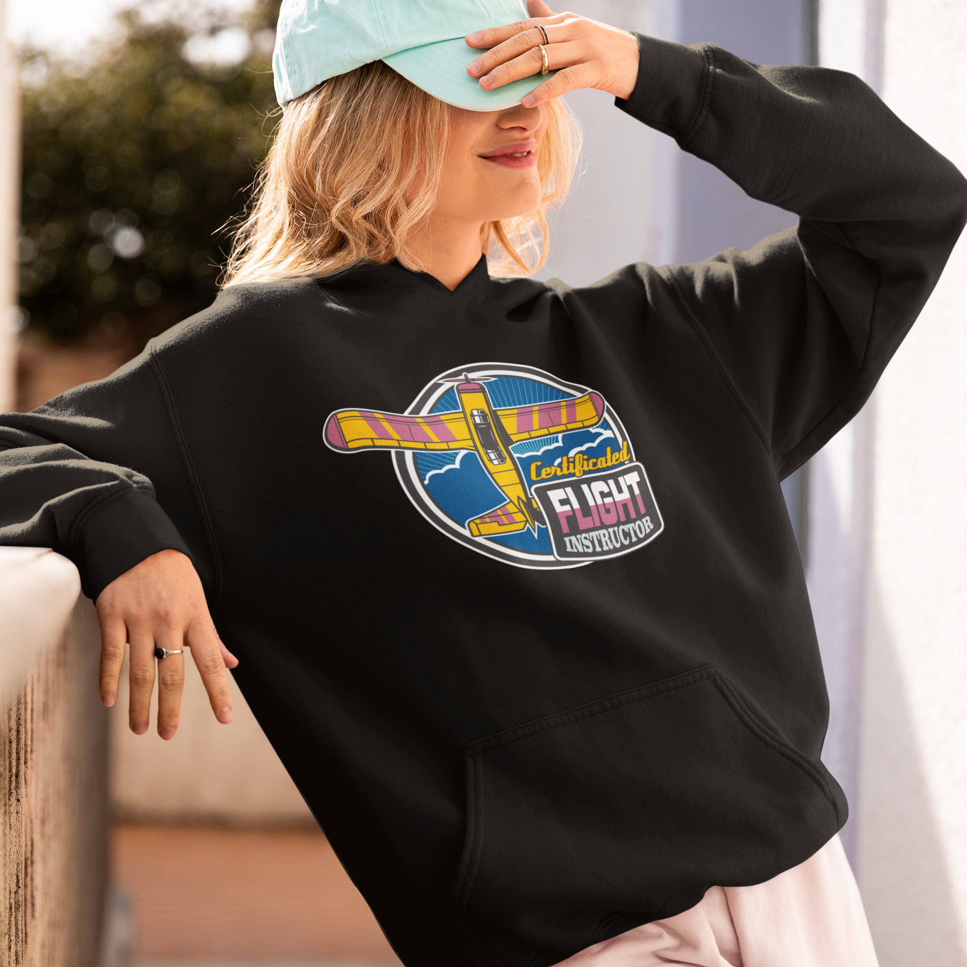 You climbed that CFI mountain and are now ready to soar with students by your side! Getting your flight instructor certification is certainly an accomplishment, so why not advertise your new (or ongoing) status at the airport with our retro CFI sweatshirt or hoodie?