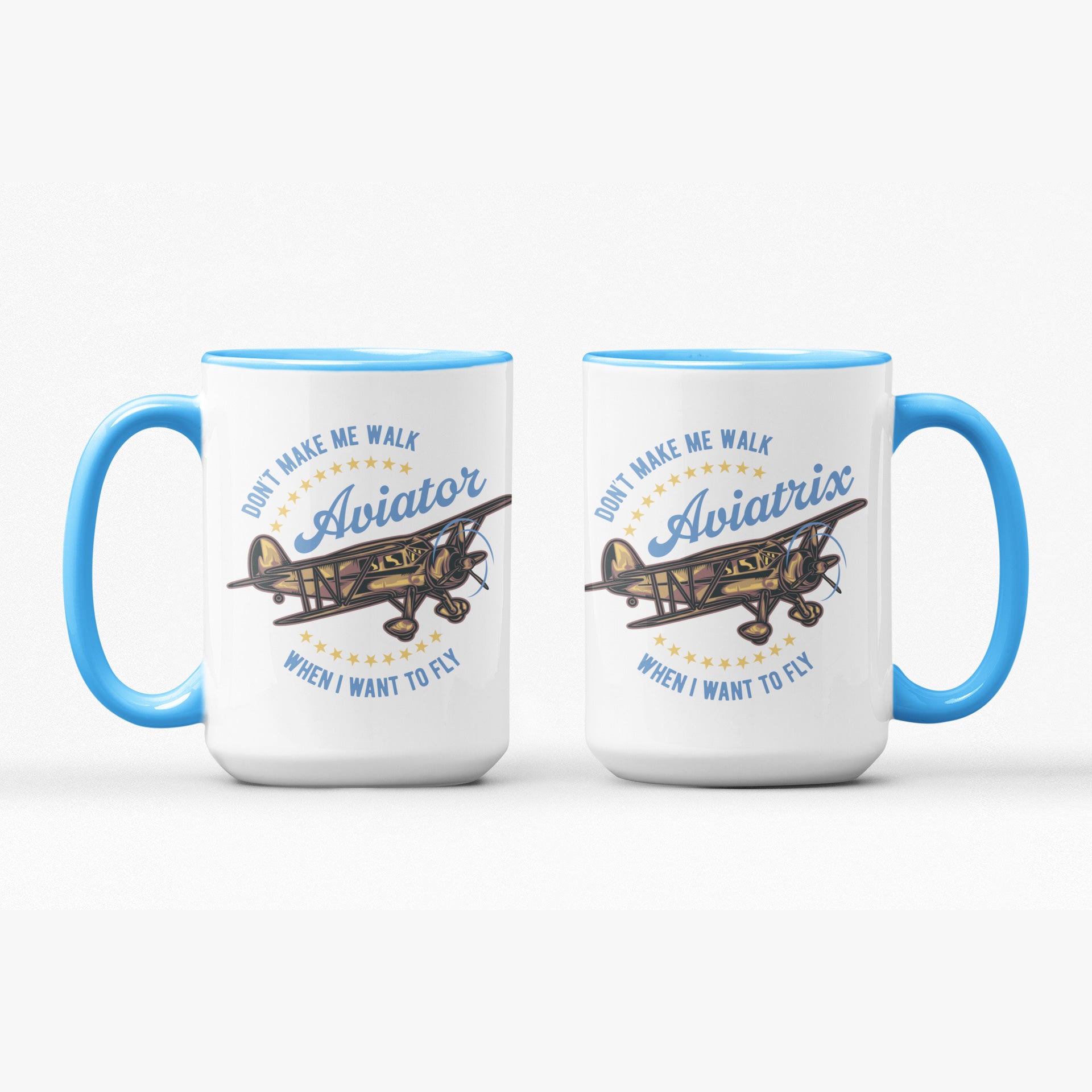 "Don't make me walk, when I want to fly" – many of us feel the same way when we glance up at the sound of a plane overhead or greet our own aircraft at the airport before a lesson or a Sunday hamburger run. Carry that feeling into the office or the hangar with our new coffee and tea mug design.