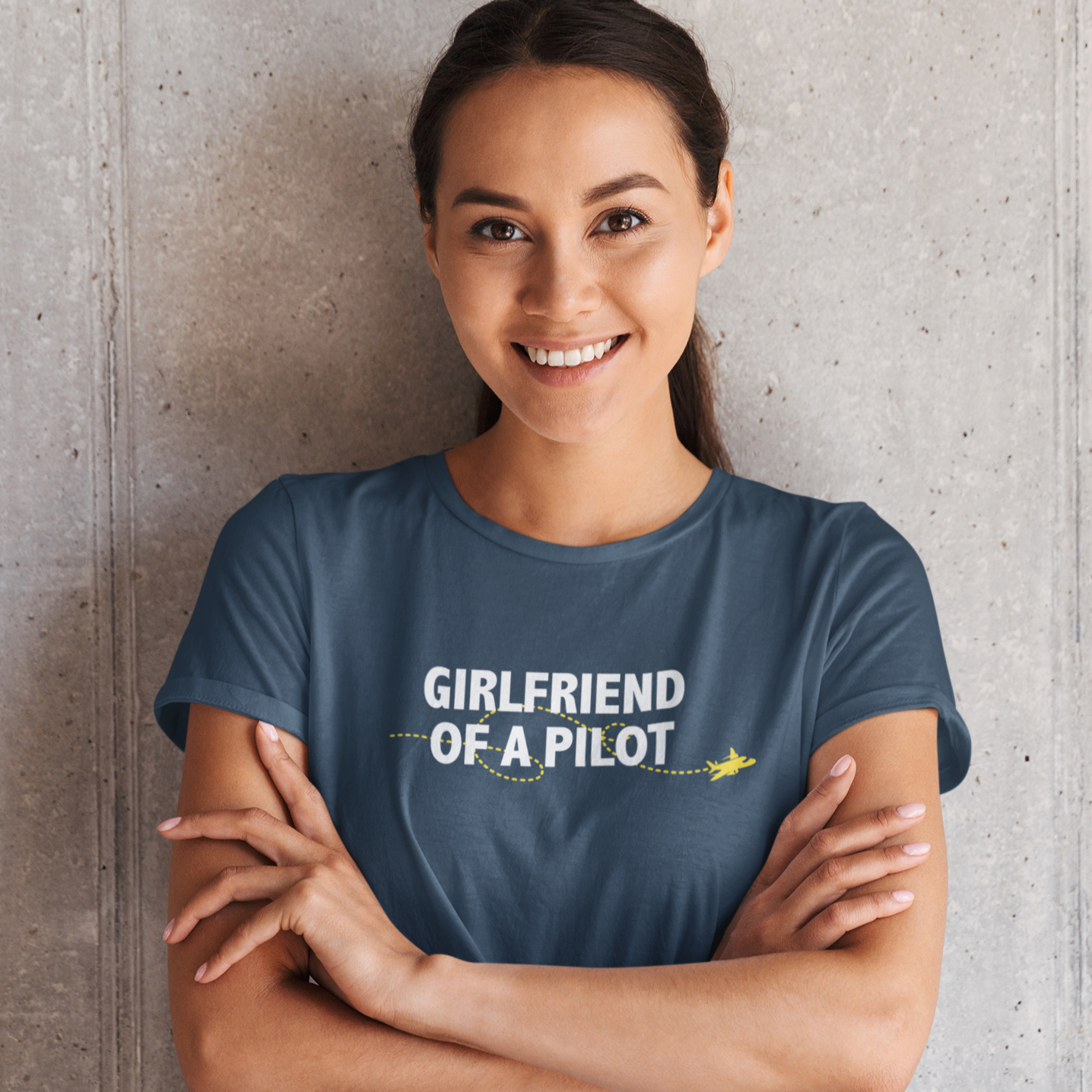 Choose a small plane, a jet plane or a helicopter in either a pink or yellow accent under white text. Featuring a cozy and comfortable poly-cotton blend in a blue-gray Indigo color with a unisex fit, this tee might be worn more than just one flight. Every flight.... or every day you share how proud you are to know a pilot!