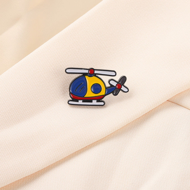 A cute and colorful helicopter perfect for your backpack or jacket. Pin has an enamel inlay and is secured with a rubber stopper.