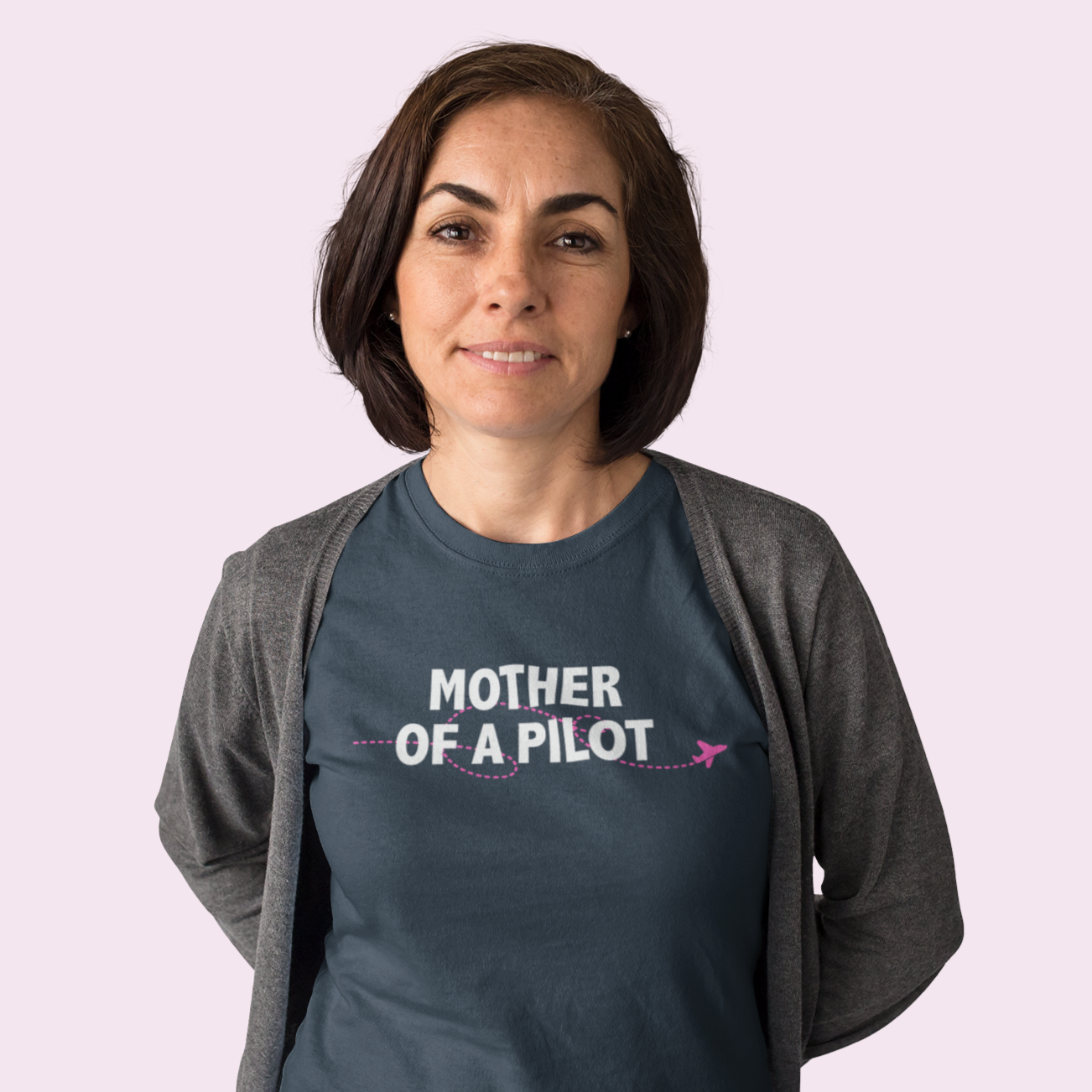 Choose a small plane, a jet plane or a helicopter in either a pink or yellow accent under white text. Featuring a cozy and comfortable poly-cotton blend in a blue-gray Indigo color with a unisex fit, this tee might be worn more than just one flight. Every flight.... or every day you share how proud you are to know a pilot!