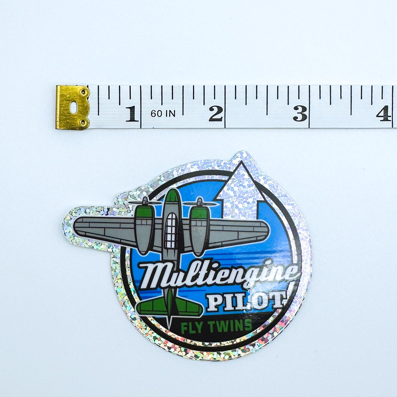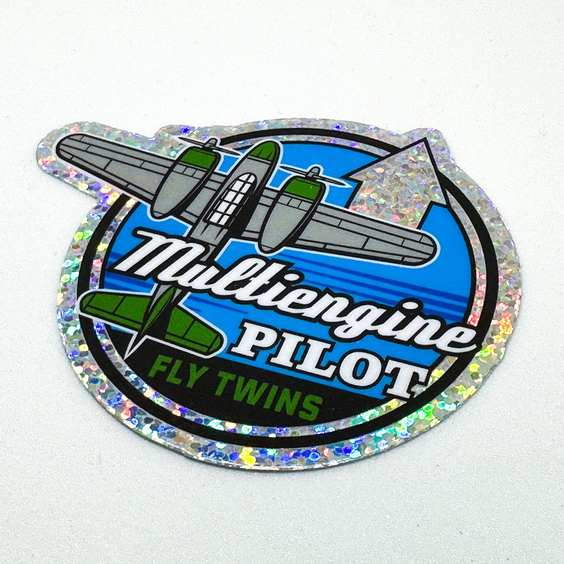 Celebrate your successful multi checkride (or your years of experience!) as you watch the glitter catch the light on this Multiengine Pilot sticker. Or congratulate the new multiengine pilot with a sticker gift.