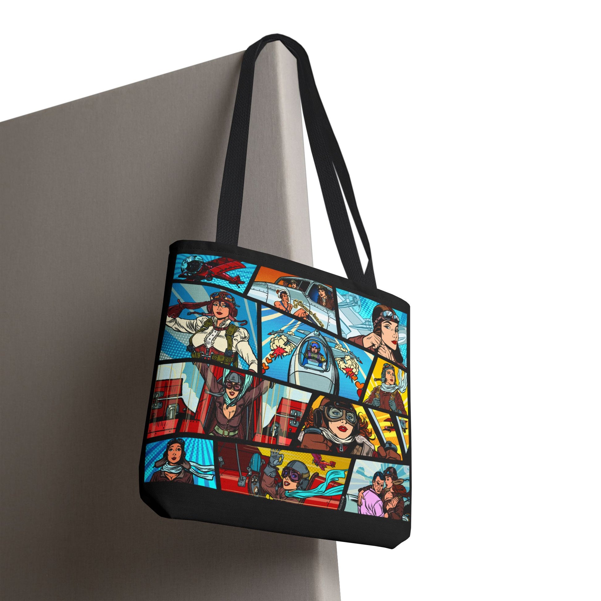 Pop Art Aviatrix Female Pilot Graphic Tote Bag