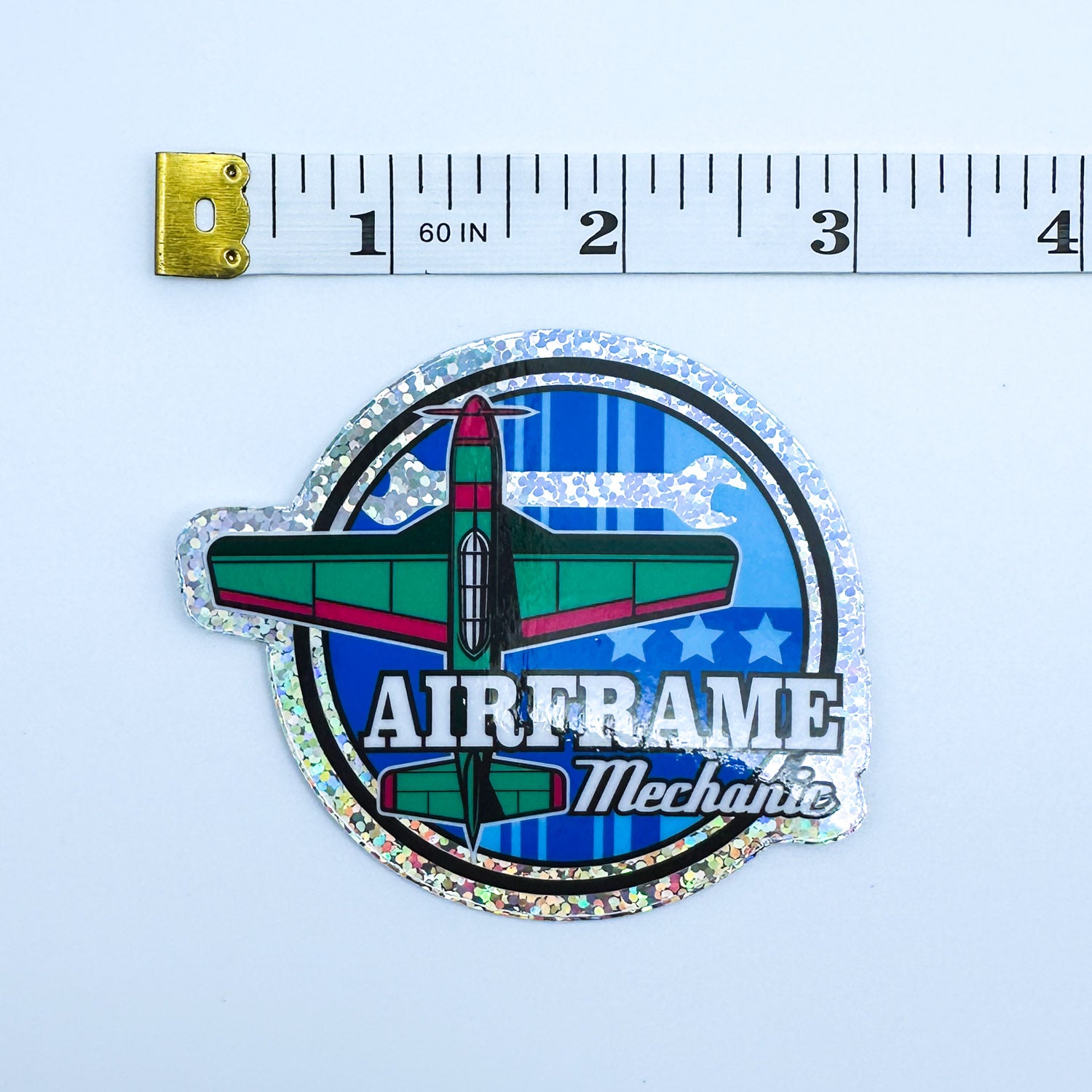 Celebrate your successful airframe oral and practical (or your years of experience!) as you watch the glitter catch the light on this Airframe Mechanic sticker.