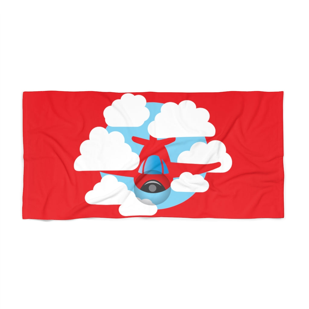 Show up on the beach, lake or pool with a vibrant and super soft beach towel featuring a cartoon plane navigating the clouds, hopefully with an instrument-rated pilot at the controls. One-sided print, polyester facing with cotton loop backing for extra lush absorbency.