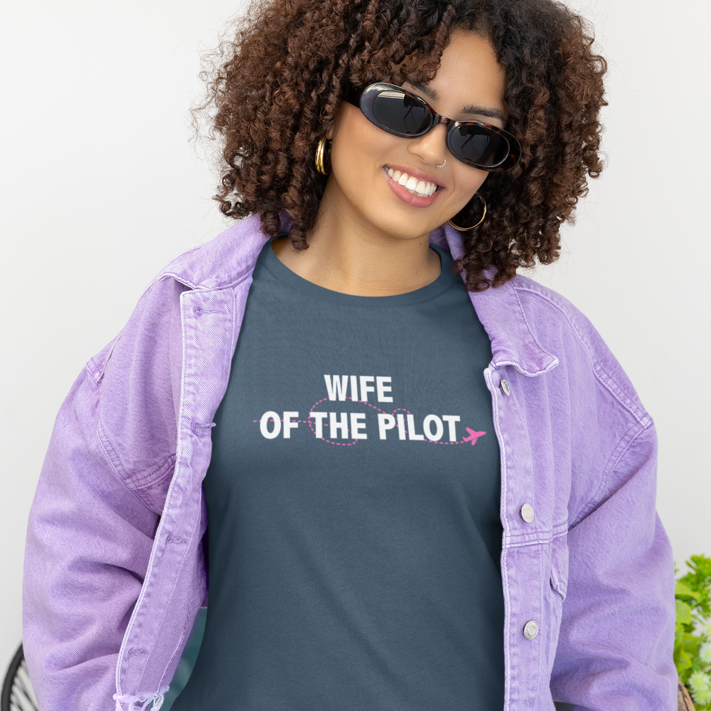Choose a small plane, a jet plane or a helicopter in either a pink or yellow accent under white text. Featuring a cozy and comfortable poly-cotton blend in a blue-gray Indigo color with a unisex fit, this tee might be worn more than just one flight. Every flight.... or every day you share how proud you are to know a pilot!
